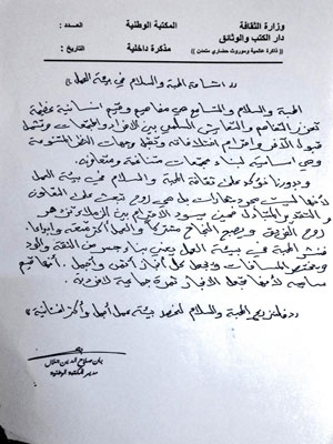 كتبت مديرة المكتبة الوطنية السيدة بان صلاح الدين: