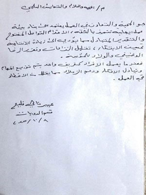 كتبت السيدة عبير ناهي فليح في مساهمتها: