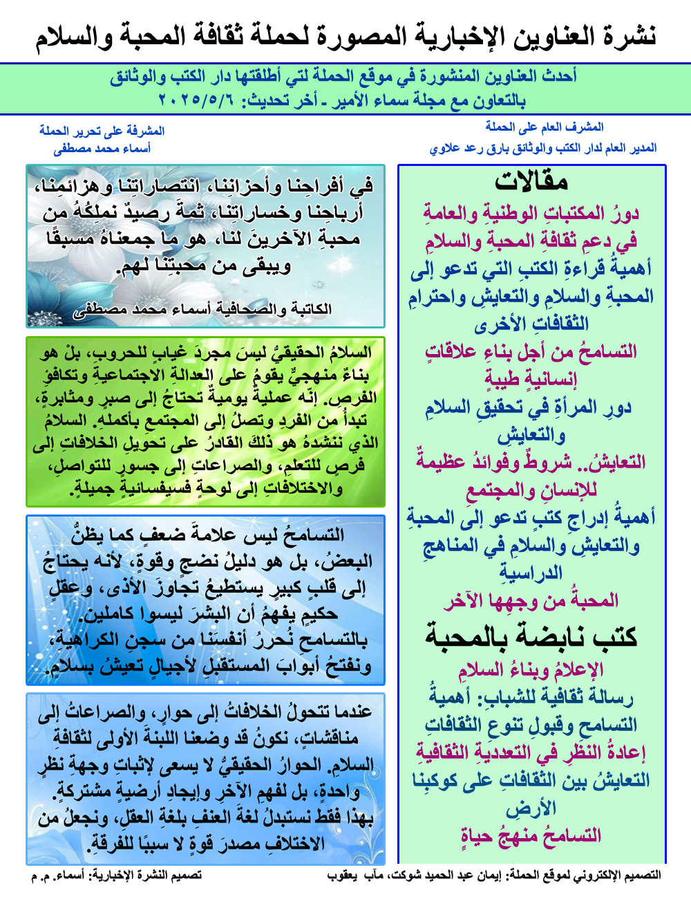 #تحديثات_حملة_ثقافة _المحبة_والسلام