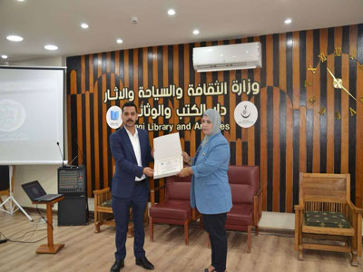 السيد علاوي أكد أن الدار حريصة على دعم المكتبات العامة والحكومية في عموم محافظات العراق، تحقيقًا لرؤيتها الاستراتيجية في تعزيز روابط التعاون الثقافي مع المكتبات العامة، بما يفتح آفاقًا لشراكات ثقافية وتكامل حكومي فاعل.