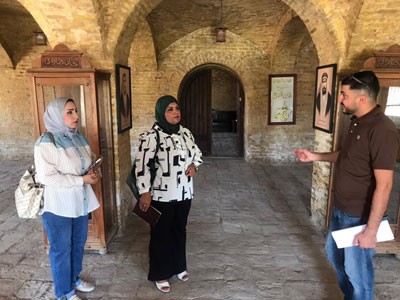 مسؤول الخان السيد حسين السعد، رافق الوفد، الذي ضم مديرة المركز الوطني السيدة سندس عبدالقادر، و مديرة قسم الوثائق السيدة رشا عصام، للاطلاع ميدانيا على القاعات التي ستعرض فيها الوثائق والصور التاريخية التي تجسد بطولات أبناء العراق وتعيد للأذهان صور التضحية والوحدة التي صنعتها ملحمة ثورة العشرين.