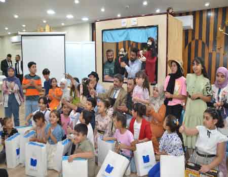 وتضمن الحفل أغاني وعروض مسرحية وترفيهية تلاها توزيع هدايا لأطفال